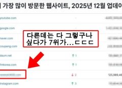 한국에서 가장 많이 방문한 웹사이트, 2025년 12월 기준ㄷㄷㄷ