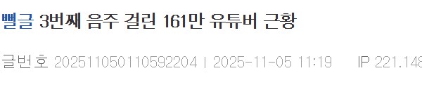 3번째 음주 걸린 161만 유튜버 근황 ㄷㄷㄷ