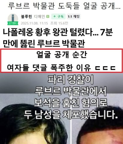 루브르 박물관 도둑들 얼굴 공개 ㄷㄷㄷ
