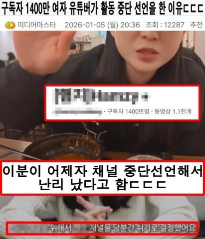 구독자 1400만 여자 유튜버가 활동 중단 선언을 한 이유ㄷㄷㄷ