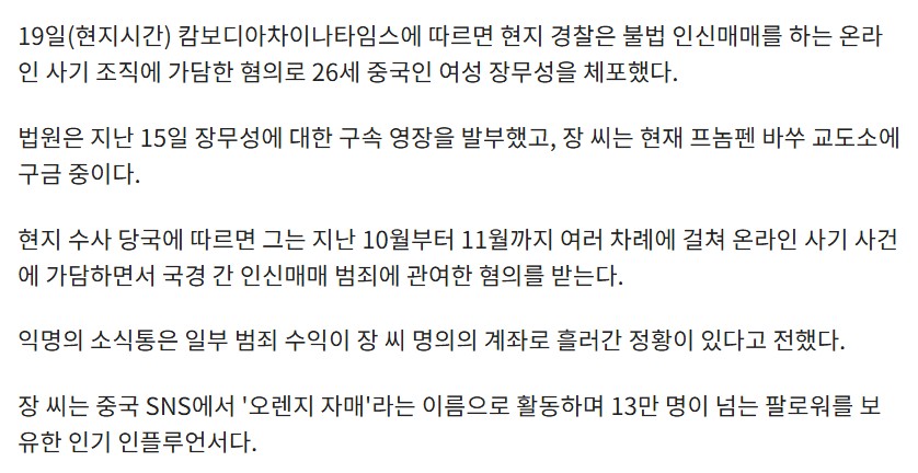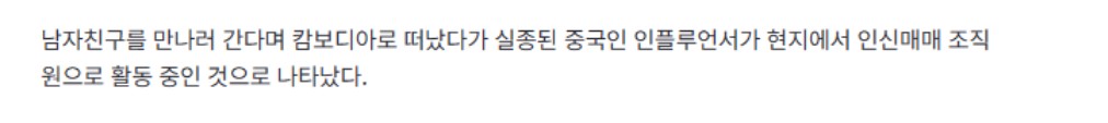 캄보디아서 실종 인플루언서…‘ㅇ-ㅅ-매-매’ 조직원이었다