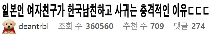 일본인 여자친구가 한국남친하고 사귀는 충격적인 이유ㄷㄷㄷ
