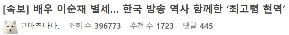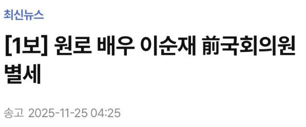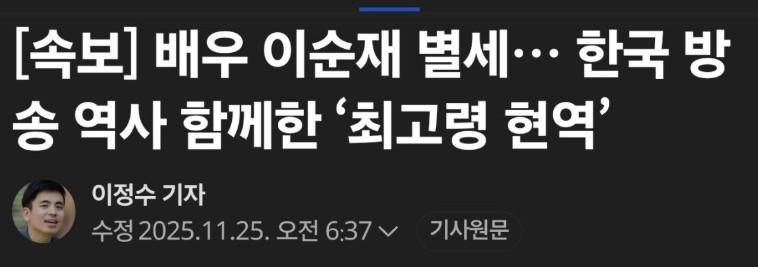 속보) 원로배우이자 전 국회의원 이순재 향년 90세로 별세