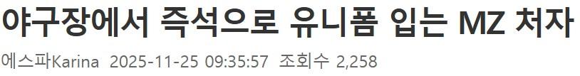 야구장에서 즉석으로 유니폼 입는 MZ처자ㄷㄷㄷ