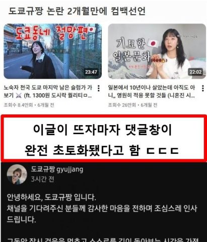 도쿄규짱 논란 2개월만에 컴백선언 ㄷㄷㄷ