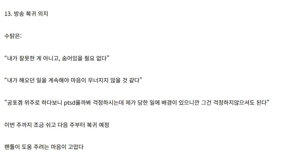 유튜버 수탉 근황 방송 내용 정리 ㄷㄷㄷ