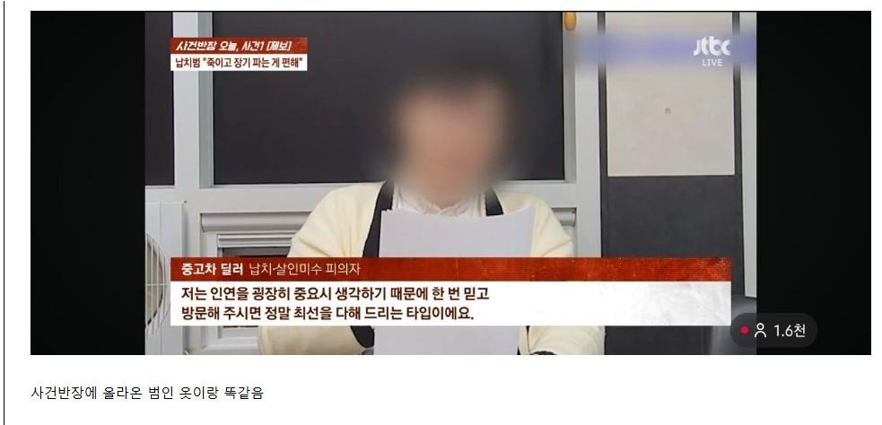 수-탉 납치했던 중고차 딜러 얼굴 ㄷㄷㄷ