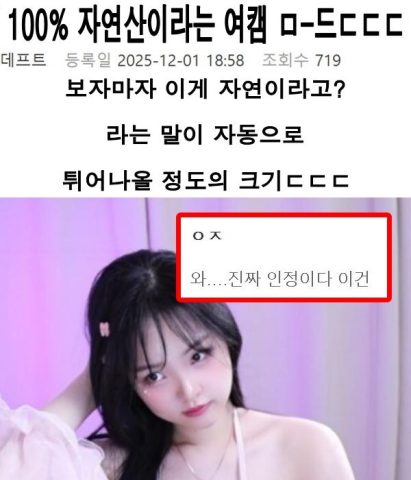 100% 자연산이라는 여캠 ㅁ-드ㄷㄷㄷ