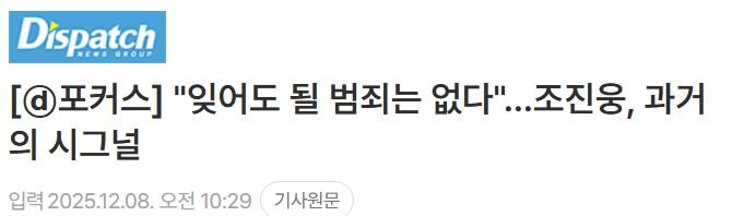 실시간 조진웅 관련 추가 폭로한 디스패치 ㄷㄷㄷ