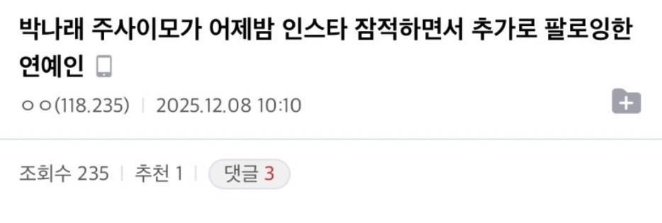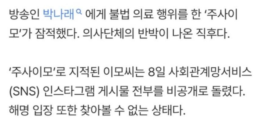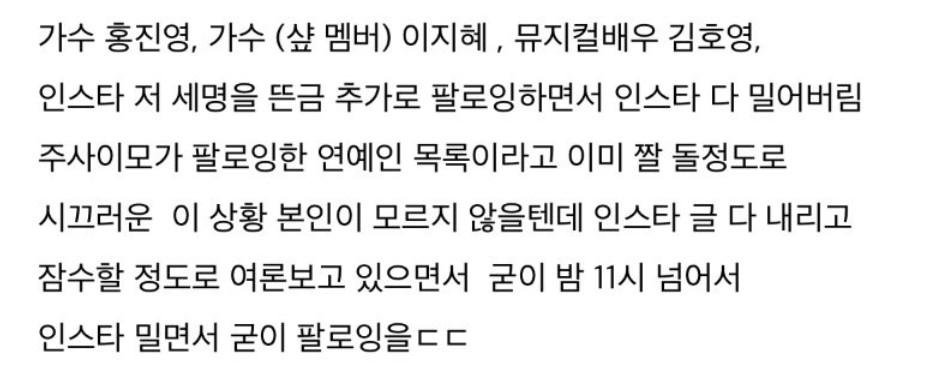 박나래 주사이모가 인스타 닫고 잠적하면서 어제 갑자기 추가로 팔로잉한 연예인들 ㄷㄷㄷ