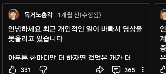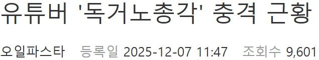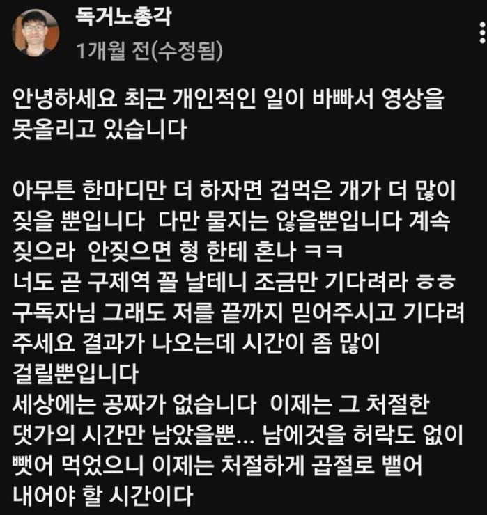 유튜버 독거노총각 충격 근황ㄷㄷㄷ