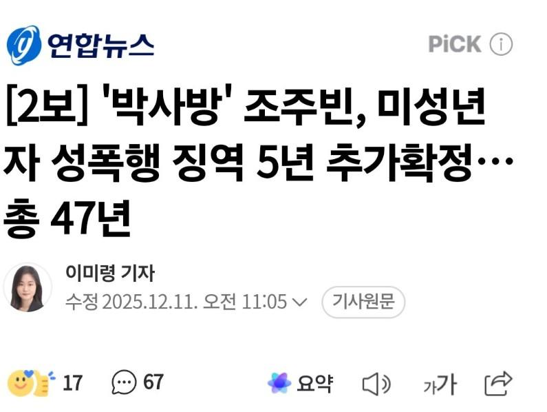 이번에 징역 5년 추가 확정받은 조주빈 47년형 출소 체감ㄷㄷㄷ