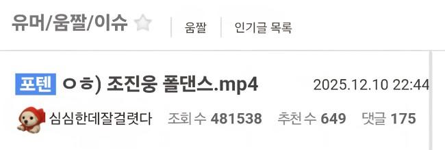 제목이 조진웅 폴댄스였는데도 다들 못참고 눌렀다는 영상 ㅗㅜㅑ