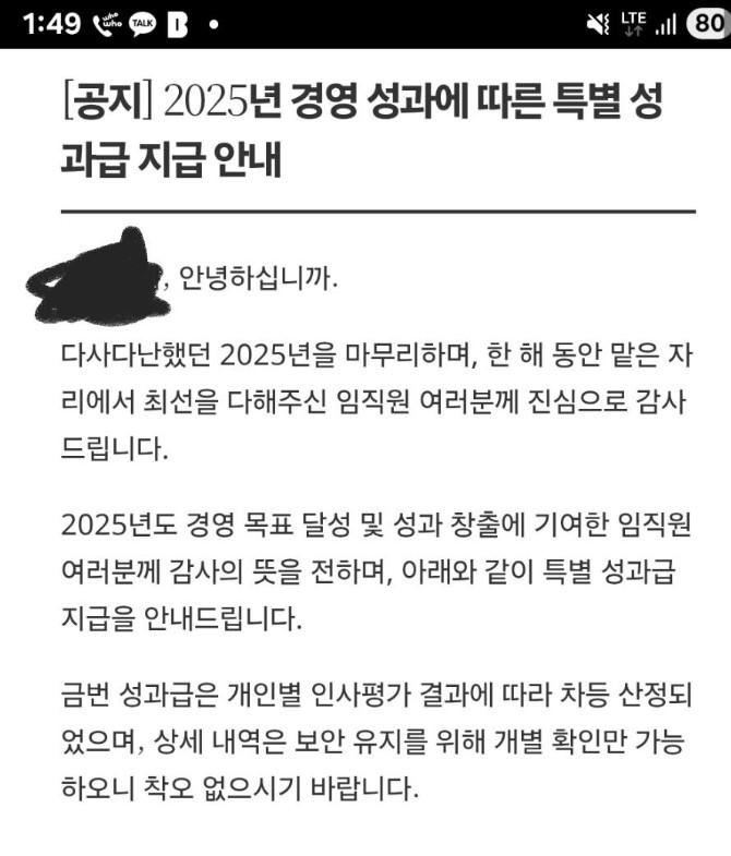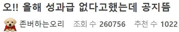 오!! 올해 성과급 없다고했는데 공지뜸