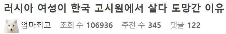 러시아 여성이 한국 고시원에서 살다 도망간 이유