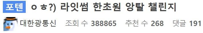 남자들 죽어보라고 올린 한초원 묵-직-한 챌린지 ㄷㄷㄷ