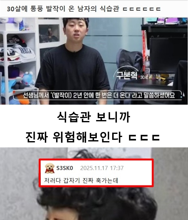 30살에 통풍 발작이 온 남자의 식습관 ㄷㄷㄷㄷㄷㄷ December 26, 2025 pullman 30살에 통풍 발작이 온 남자의 식습관 ㄷㄷㄷㄷㄷㄷ 근데 이런 식습관 가진 남자들 은근 많을듯?? Post Views: 2