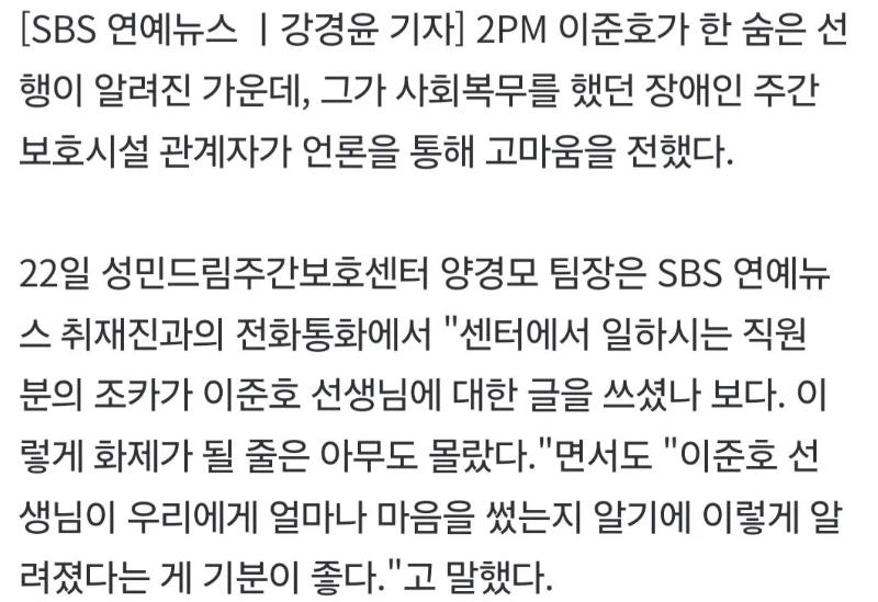 2PM 준호 공익근무 시절 센터직원들 후기떳다 ㄷㄷㄷ