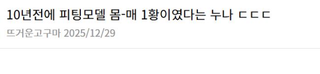 10년전에 피팅모델 몸-매 1황이였다는 누나 ㄷㄷㄷ January 3, 2026 pullman 10년전에 피팅모델 몸-매 1황이였다는 누나 ㄷㄷㄷ 여자들한테 한떄 워너비 몸-매-였다고 함 ㄷㄷㄷ Post Views: 32