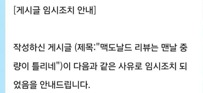 글 올리면 맥도날드가 삭제요청한다는 햄버거 논란 ㄷㄷㄷ