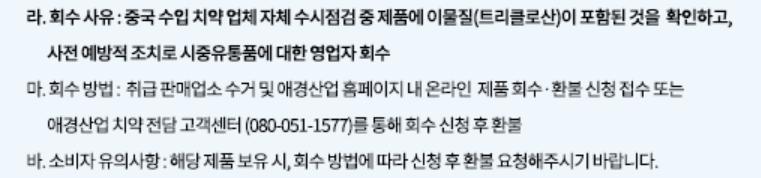현재 한국에서 긴급 회수 공표한 치약 ㄷㄷㄷ