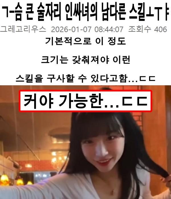 ㄱ-슴 큰 술자리 인싸녀의 남다른 스킬ㅗㅜㅑ January 7, 2026 pullman ㄱ-슴 큰 술자리 인싸녀의 남다른 스킬ㅗㅜㅑ 피지컬이 좋아야만 가능한 기술ㄷㄷㄷ Post Views: 367
