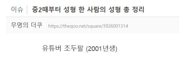 성형 완전 폭망했다는 41만 유튜버 조두팔 ㄷㄷㄷ January 8, 2026 pullman 5년전에 이렇게 얘기했는데 계속 성형한 결과 현재 얼굴 ㄷㄷㄷ 지금까지 성형했던 목록보면 진짜 소름 그 자체임 ㄷㄷㄷ Post Views: 182