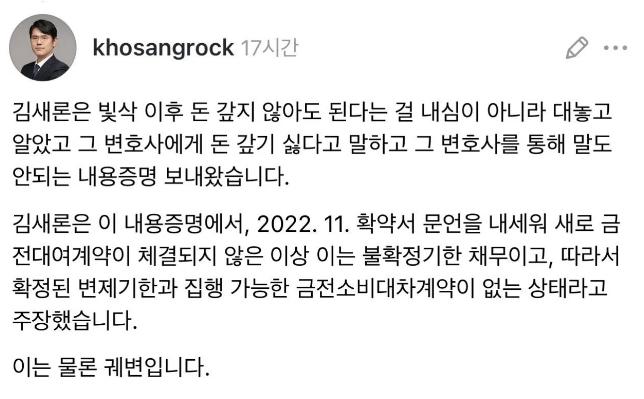김수현 소속사에 돈갚기 싫다고 내용 증명 보냈었다는 故김새론