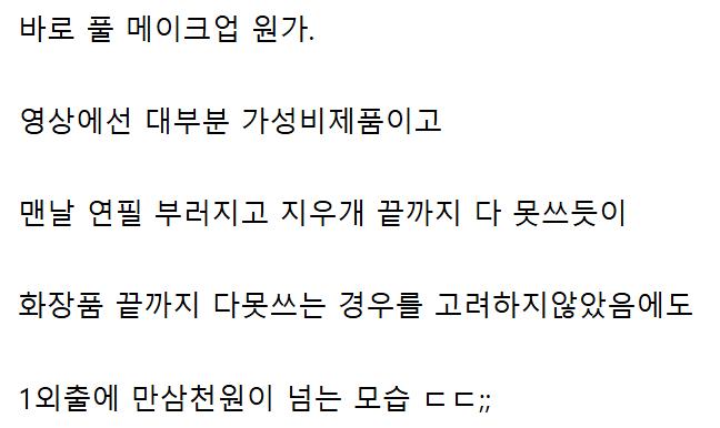 여자들이 풀메이크업 한번에 쓰이는 비용 ㄷㄷㄷ