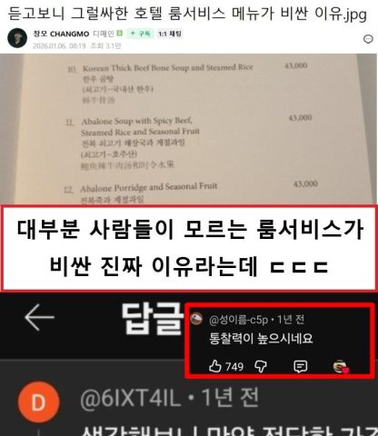 몇년전에 올라온 신라호텔 룸서비스 가격 ㅎㄷㄷ Post Views: 178
