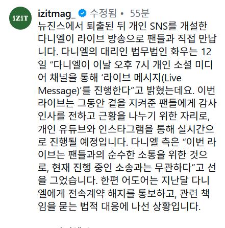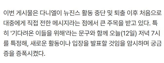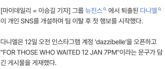 뉴진스에서 퇴출된 다니엘 인스타 첫 게시물 ㄷㄷㄷ