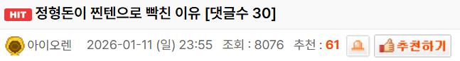 이 콘텐츠는 쿠팡 파트너스 활동을 통해 소정의 수수료를 제공받을 수 있습니다. 30초 후에 스크롤이 가능합니다. 상품정보 보러가기 클릭! 정형돈이 찐텐으로 빡친 이유 January 12, 2026 pullman Post Views: 77