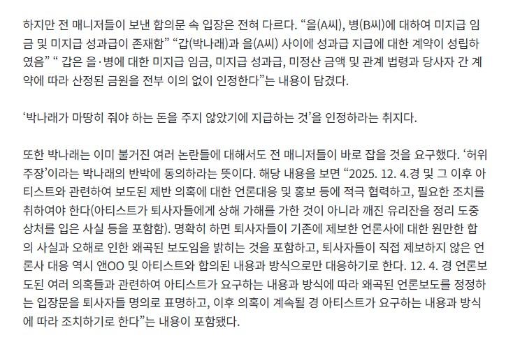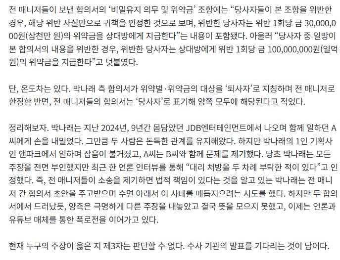 박나래 전 매니저 합의서 최초 공개…매니저들이 합의 안한 진짜 이유ㄷㄷㄷ