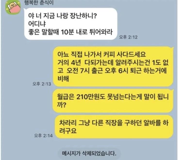 월급 200만원 받고 사장 심부름만하다 퇴사선언한 디시인