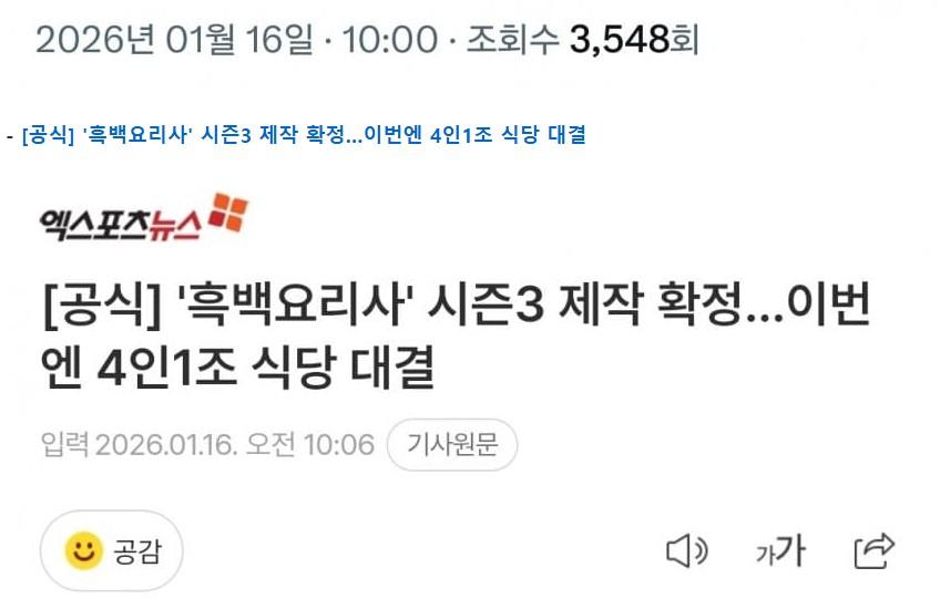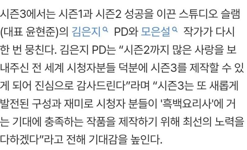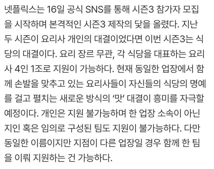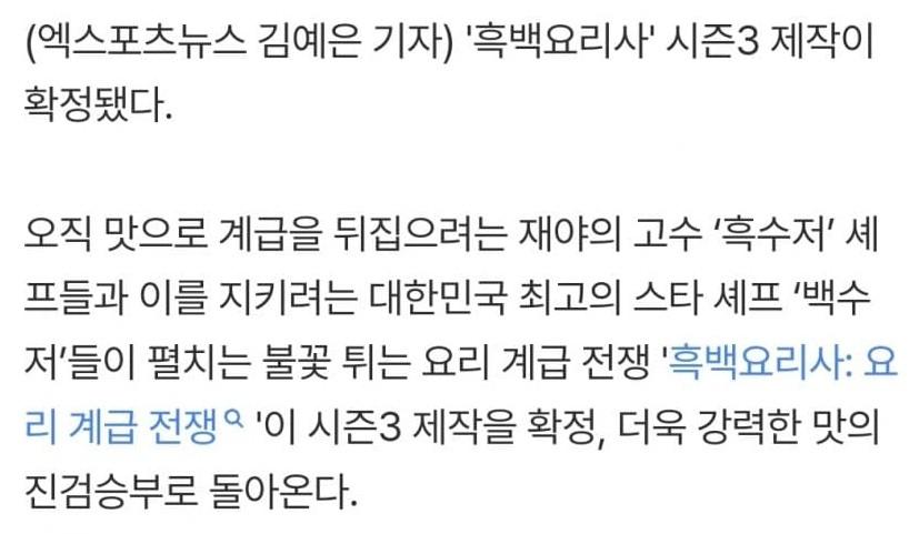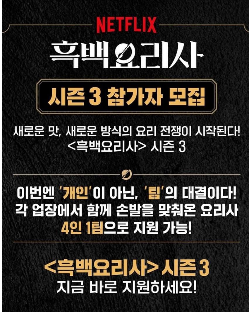 바로 떴다는 흑백요리사 시즌3 오피셜…ㄷㄷㄷ