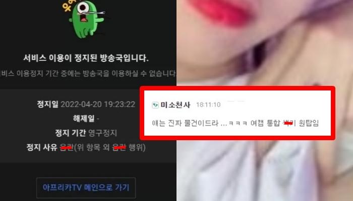 실시간 시청자 2만명 찍고 너무 Y-A-해-서 무기한 정지먹은 여캠 ㄷㄷㄷ