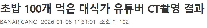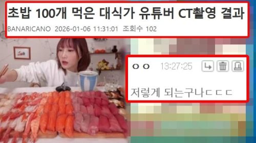 초밥 100개 먹은 대식가 유튜버 CT촬영 결과