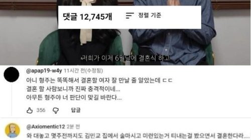 핫소스 박민정 결혼 영상 댓글 1만 2천개 달리면서 반응 안좋은 이유 ㄷㄷㄷ