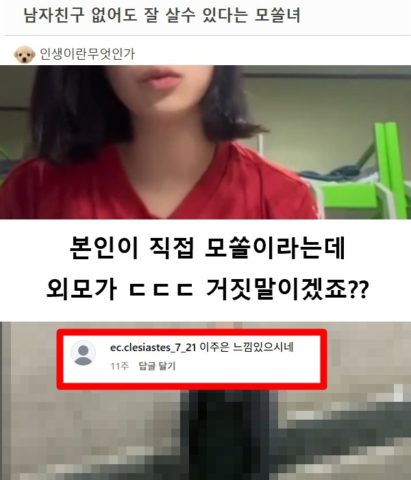 남자친구 없어도 잘 살수 있다는 모쏠녀 ㄷㄷㄷ