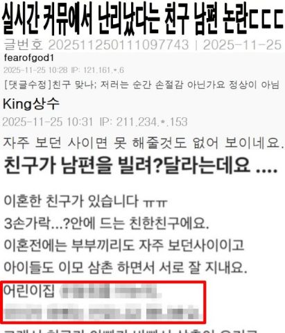 실시간 커뮤에서 난리났다는 친구 남편 논란ㄷㄷㄷ