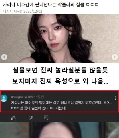 카리나 비호감에 싼티난다는 악플러(+실물공개 ㄷㄷㄷ)
