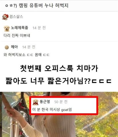 요즘 남자들 사이에서 핫한 캠핑 유튜버 누나 하-체 수준 ㄷㄷㄷ