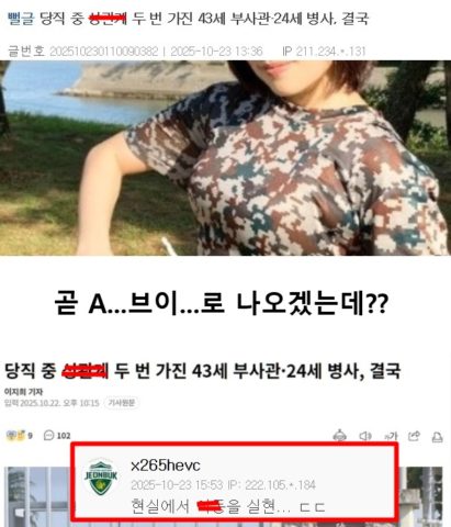 당직 중 ㅅ-관-계 두 번 가진 43세 부사관 24세 병사, 결국 ㄷㄷㄷ