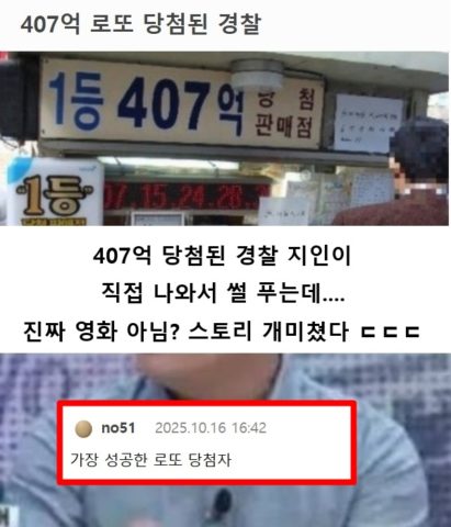 407억 로또 당첨된 경찰 ㄷㄷㄷ