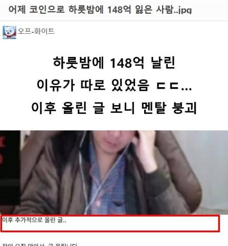 어제 코인으로 하룻밤에 148억 잃은 사람 ㄷㄷㄷ