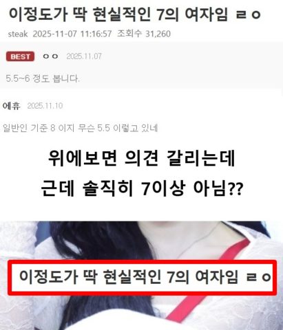 이정도가 딱 현실적인 7의 여자임 ㄹㅇ