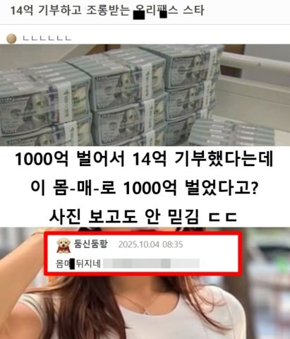 14억 기부하고 조롱받는 온-리-팬-스 스타 ㄷㄷㄷ