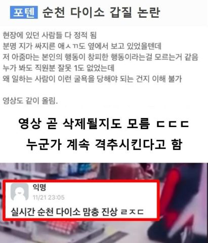 순천 다이소 갑질 논란 ㄷㄷㄷ(+갑질영상)