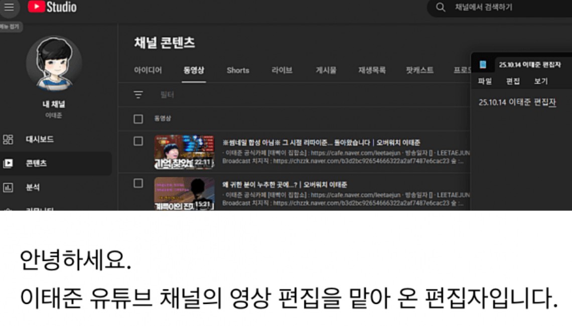 한때 유명했던 오버워치 전프로 이태준 근황