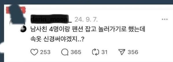 인스타에서 난리났던 남사친 4명이랑 펜션간다는 여자 근황 ㄷㄷㄷ